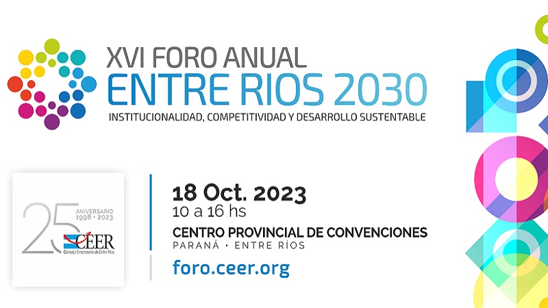En el marco de sus 25 años, el Consejo Empresario de Entre Ríos (CEER) llevará adelante su XVI Foro Anual denominado “Institucionalidad, Competitividad y Desarrollo Sostenible”. La cita será el miércoles 18 de octubre, en el Centro Provincial de Convenciones de Paraná.