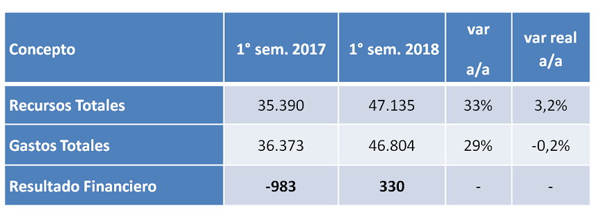 El sector público provincial expone un mejoramiento en su resultado fiscal, presentando un informe semestral de Ejecución Presupuestaria equilibrado. Basado en un importante crecimiento de la coparticipación nacional y la recaudación impositiva de Entre Ríos, en particular, el impuesto a los Ingresos Brutos, que impacta sobre la presión tributaria al sector privado, sumado a una reducción persistente en el volumen de recursos destinados a la obra pública provincial.